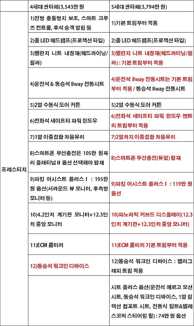 정리하면, 신형 싼타페는 이전보다 비싸 소비자 진입장벽은 확실히 올라갔다. 하지만 인상폭에 맞춰 기본 사양을 보강했다.