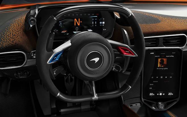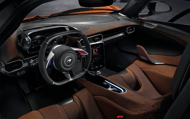 실내 소재는 맥라렌 이노니트(Mclaren InnoKnit)로 꾸며지는데 절단 및 재봉이 필요하지 않은 소재다. 또한 다양한 패턴 및 색상, 질감을 낼 수 있는 것이 특징이다. 해당 소재는 맥라렌의 개인화 패키지인 MSO(Mclaren Special Operations)의 적용 범위를 보다 넓힐 수 있다. 오디오 시스템은 바워스 앤 윌킨스(Bowers & Wilkins)가 탑재된다.