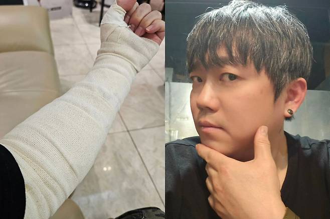 함께 공개된 사진 속에는 송백경이 목, 정강이, 왼팔에 붕대를 감은 모습이 담겼습니다.