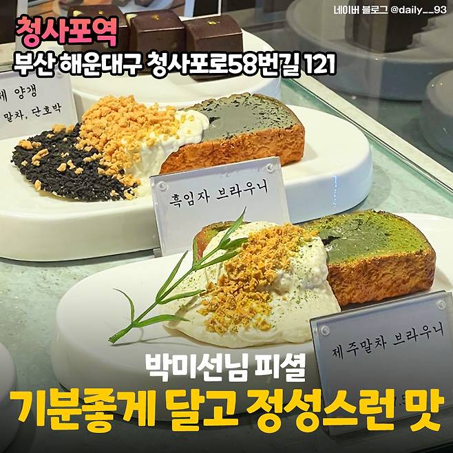 디저트로 판매되고 있는 양갱은 평소에 별로 좋아하지 않았던 분들도 고개를 끄덕거릴 만큼 고급스러운 맛이라고 해요. 박미선님은 청사포역 메뉴들에 대해 기분 나쁘게 달지 않고 집에서 정성스럽게 만든 맛 같다고 호평을 하시더라구요.