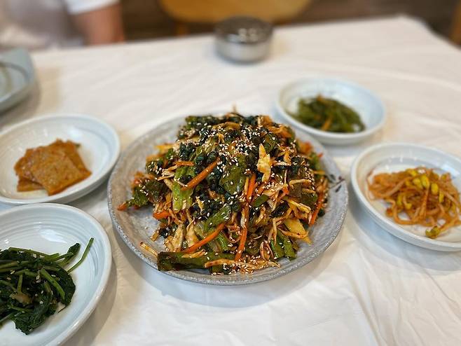 색색의 비주얼부터 입맛을 자극하는 멍게비빔밥 맛집 통영 '멍게가'. 멍게와 해초, 김, 계란지단, 오이채가 함께 올려져 다양한 색감을 뽐내는 멍게비빔밥은 멍게 고유의 향과 오독오독한 해초, 아삭한 채소의 식감이 한데 어우러져 조화를 이룬다. 함께 나오는 미역국과 같이 먹으면 입안 가득 바다의 풍미가 가득 퍼진다고. 여기에 정성이 가득한 정갈한 느낌의 밑반찬까지 곁들이면 훌륭한 한 끼를 먹을 수 있다.