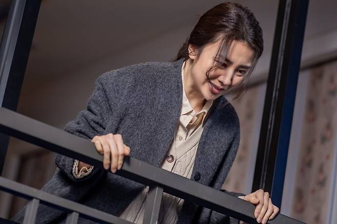 '임대맘'의 박하선은 아슬아슬하게 난간에 서서 광기로 가득 찬 눈빛과 표정을 짓고 있다. 살기 어린 눈빛에 마치 미소처럼 보이는 한 쪽으로 올라간 입꼬리가 소름을 유발한다.
