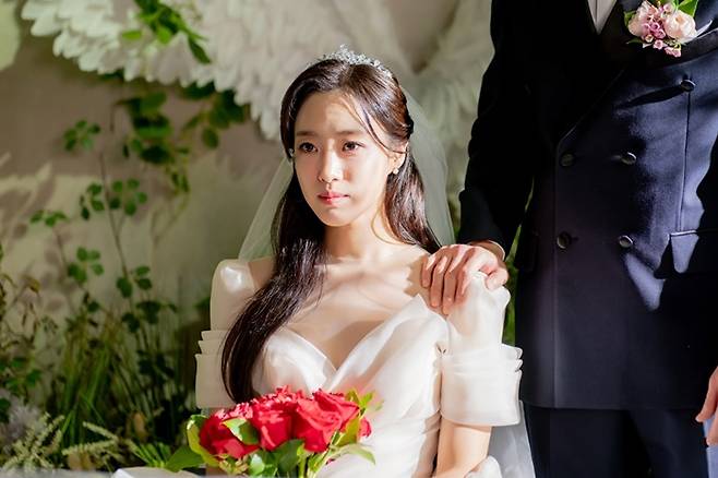신작 '타로: 일곱 장의 이야기'에서 '커플매니저' 편의 주인공 함은정. 공개된 스틸 속에는 가장 행복해야 할 결혼식과는 사뭇 다른 분위기가 감지된다. 과연 그녀의 남편의 정체는 무엇일지 이목이 쏠리고 있다.
