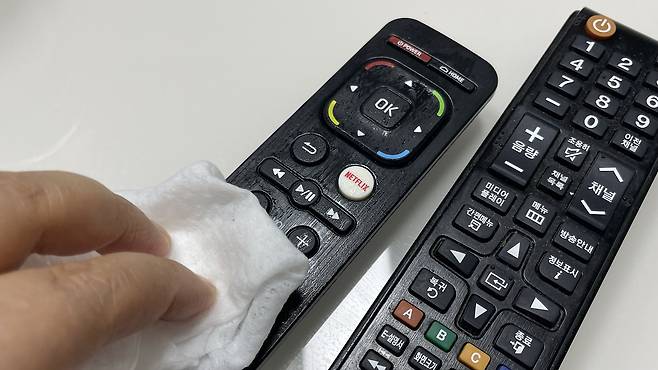 리모컨은 여러 사람이 만지는 물건이다 보니 세균이 참 많다고 하더라고요.