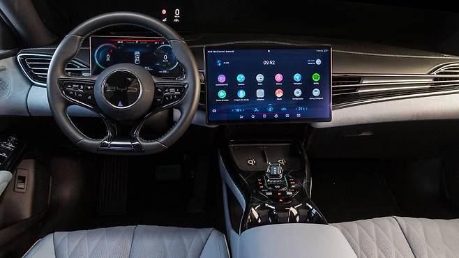 전장 4,800mm, 전폭 1,875mm, 휠베이스 2,920mm라는 체급은 동급 전기 세단들과 비교해도 전혀 뒤처지지 않는 사이즈이며, 전기차 전용 플랫폼 구조 덕분에 뒷좌석 공간도 여유롭다.