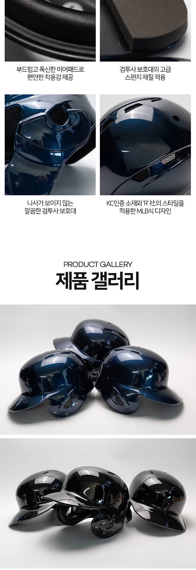 MLB쉐입의 헬멧. 머리 윗 부분이 기존 많이 보던 헬멧과 달리
