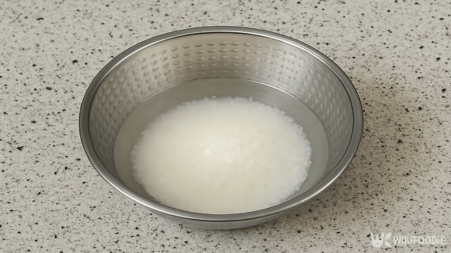 불린 쌀은 물을 버린 뒤 깨끗한 물 120ml를 부어 전자레인지에 넣는다. 이때 뚜껑은 덮지 않고 접시 위에 올린 상태로 3분간 조리한다. 뚜껑을 덮으면 물이 끓어넘칠 수 있어 주의가 필요하다.