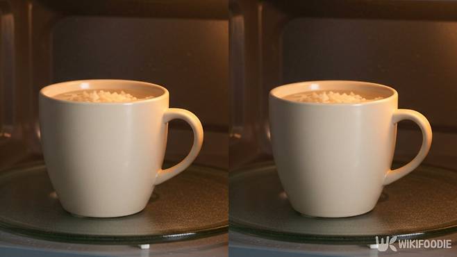 3분 후 꺼내 쌀을 한 번 고루 섞는다. 이후 뚜껑을 살짝 덮은 상태로 다시 3분간 전자레인지에 넣는다. 물이 끓어넘쳤다면 접시에 고인 물을 다시 쌀 위에 부어도 무방하다.
