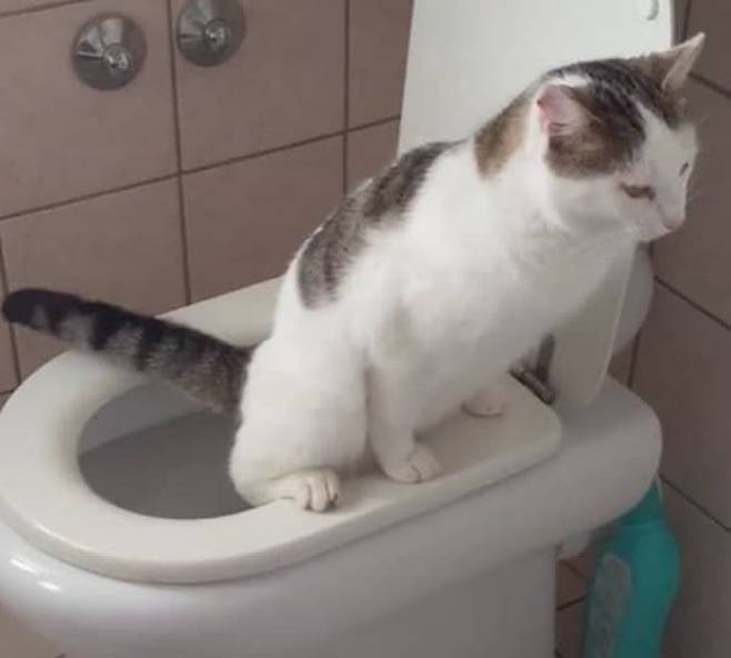 하지만 변기물을 먹는 고양이의 이후 행동에 놀라고 말았죠. 아니 글쎄, 고양이가 변기물을 다 먹은 다음 자세를 바꾸더니 엉덩이를 변기 쪽으로 들이미는 것이었죠.