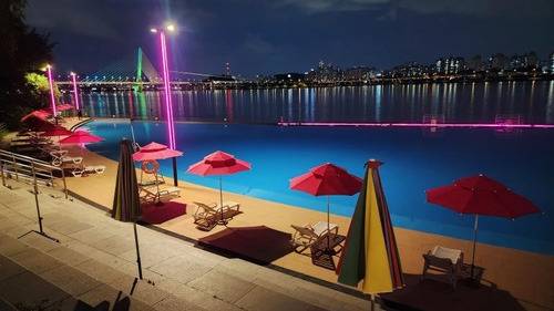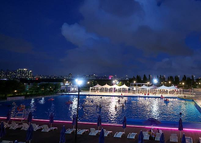 올해도 한강 수영장이 개장했다. 그중에서도 뜨거운 태양을 피해 밤에 즐기는 야간 수영장이 인기를 끌고 있다.