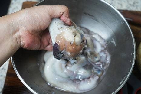 문어 표면에는 끈적한 점액질이 있는데, 이를 제거하기 위해 밀가루를 사용할 수 있습니다.