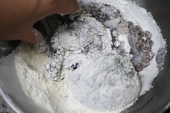 문어 표면에는 끈적한 점액질이 있는데, 이를 제거하기 위해 밀가루를 사용할 수 있습니다.