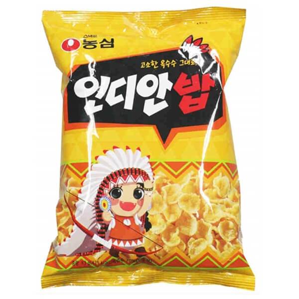 우유에 말아 먹으면 더욱 맛있고 우유와 환상의 궁합을 자랑하는 인디안밥은 밀가루가 아닌 옥수수를 사용해 만들었다. 농심에서 1976년 3월에 출시되어 꾸준히 사랑받고 있는 추억의 과자이다. 옥수수 알갱이를 눌러 만든 듯한 형태로, 설탕이나 소금 등의 시즈닝으로 범벅이 되어있지 않아 고소하고 담백한 맛을 내는 것이 특징이다.