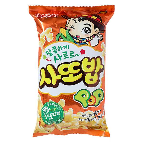 삼양식품에서 1986년에 출시한 이래 현재까지 판매 중인 ‘사또밥’이다. 동물성 원료를 사용하지 않아 비건 마크가 새겨져 있으며 밀가루가 들어가지 않고 옥수수를 사용하여 만들었다. 강한 시즈닝을 사용하지 않았지만 입 안에서 사르르 녹는 부드러운 형태이며 남녀노소 할 것 없이 달달한 맛에 빠져드는 과자이다. 아이스크림에 찍어 먹거나 우유에 말아 먹으면 더 재밌게 즐길 수 있으며 유제품과 궁합이 좋다.