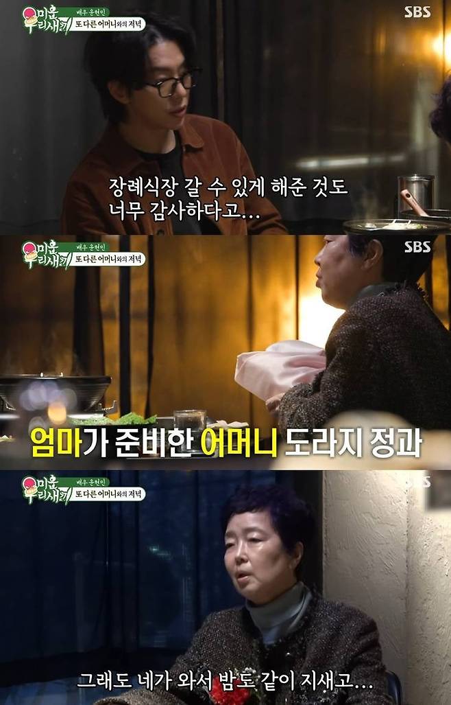 윤현민 님은 돌아가신 아빠 기일이 얼마 안 남았다며 납골당에 다녀왔다고 해. 작품 잘 되게 도와달라고 빌었다는 말에 맴찢 😭 그런데 여기서 엄마가 “그럼 제사는 거기서 하는 거야? 그 어머니에게도 꼭 금일봉 드려야 해. 당연한 거야”라고 말하는 거야! 엥? 어머니가 두 분이라고? 🤔