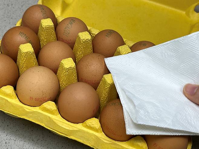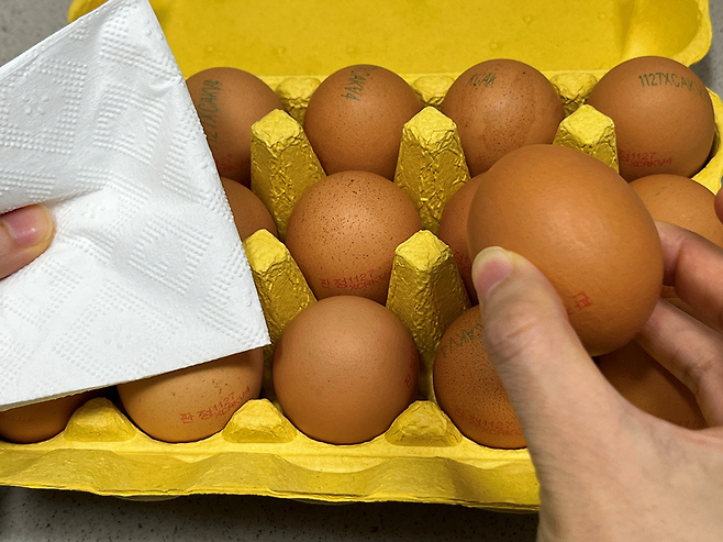 또한 키친타월을 깔아주면 계란이 붙지 않아 나중에 설거지할 때도 훨씬 편합니다.