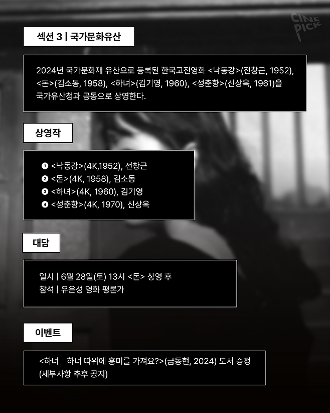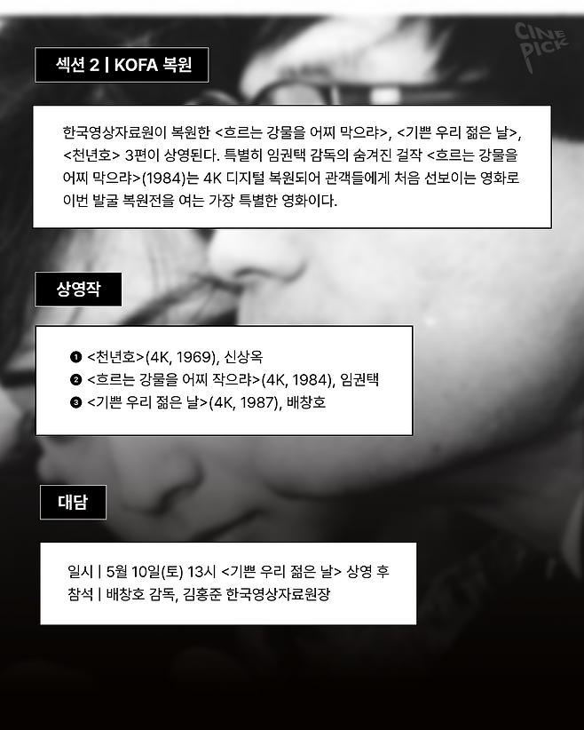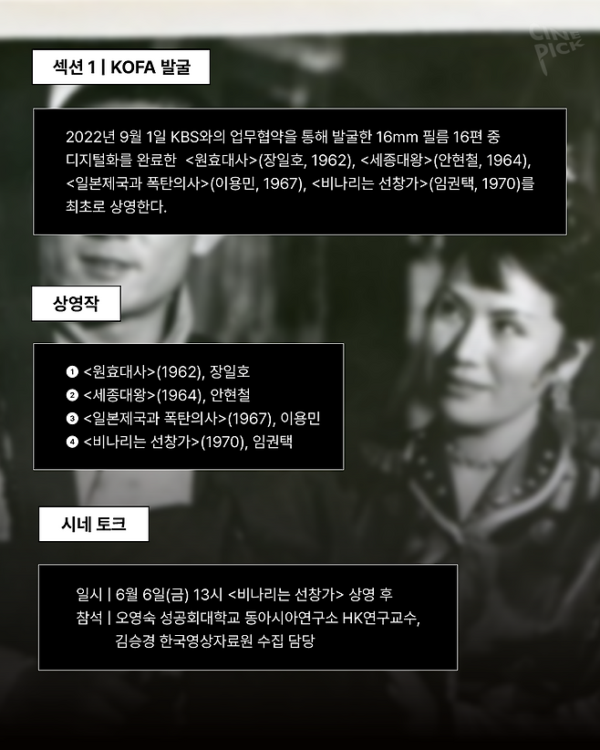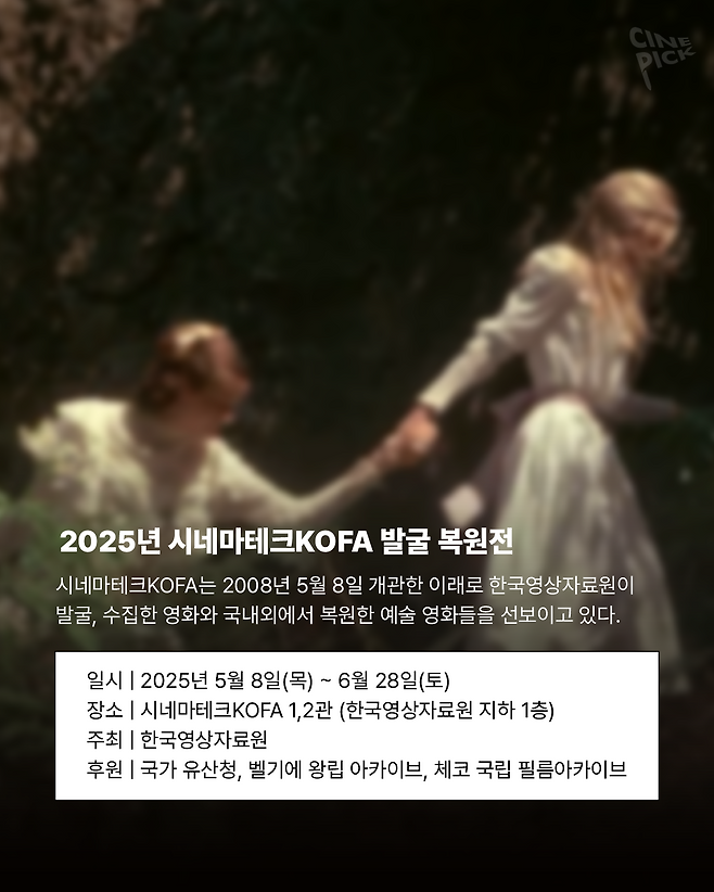시네마테크KOFA가 2008년 5월 8일 개관한 이래로 한국영상자료원이 발굴, 수집한 영화와 국내외에서 복원한 예술 영화들을 선보이는 '발굴 복원전'이 올해도 개최됩니다 🥳