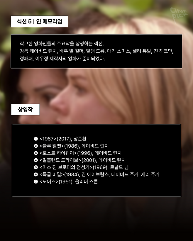 데이비드 린치, 발 킬머처럼 근래 작고한 영화인들을 기리는 ‘인 메모리엄’ 섹션, 벨기에 왕립 아카이브에서 복원한 해리 퀴멜 감독의 <말페르튀이>가 상영되는 ‘해외 복원’ 섹션 등 다채롭게 준비된 복원전을 만나보세요 ✨