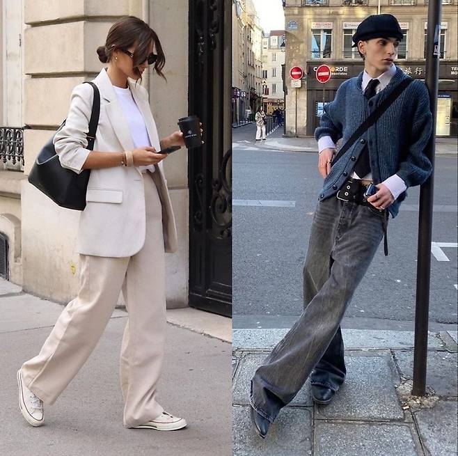 또는 캐주얼한 무드를 더 강조하고 싶다면 화이트 운동화나