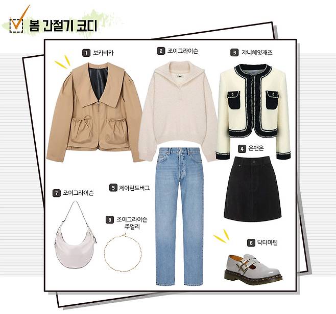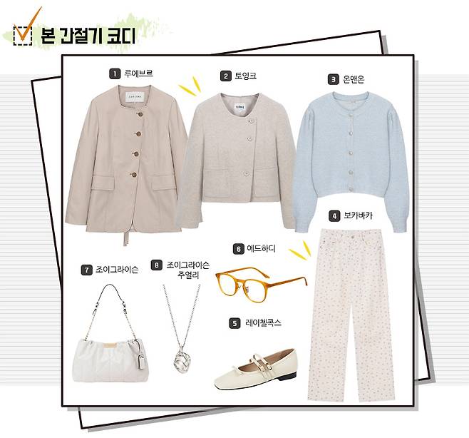 한층 더 밝고 화사한 봄 간절기룩을 완성했어요~