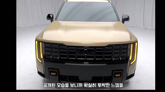 공개된 텔루라이드 풀체인지 X프로의 전면은 팰리세이드 XRT와 꽤 비슷한 투박함이 묻어난다. 전체적으로 SUV답게 단단하고 강한 인상을 드러내, 북미 시장 공략에 딱 어울리는 디자인이라는 반응이다.
