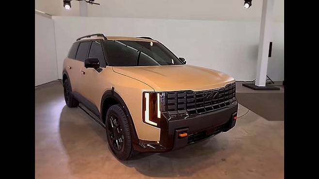 기아자동차의 대형 SUV 텔루라이드 풀체인지 모델 디자인이 드디어 공개돼 자동차 업계의 이목이 쏠리고 있다. 특히 힐러티비 채널에서 공개한 오프로드 특화 트림, X프로의 실물은 기존 팰리세이드와는 결이 다른 강인함을 담아냈다는 평가를 받고 있다. 투박하고 거친 외관이 한눈에 들어오면서, 확실한 차별점을 보여준다.