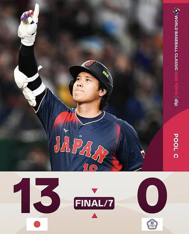 [스탠딩아웃]= 2026 WBC의 서막을 알리는 도쿄돔의 공기는 오타니 쇼헤이(LA 다저스)의 방망이 끝에서 완전히 뒤바뀌었다. 일본 야구 대표팀 '사무라이 재팬'은 6일 펼쳐진 C조 1라운드 개막전에서 대만을 상대로 13-0, 7회 콜드게임 승리를 거두며 완벽한 전력 우위를 증명했다.