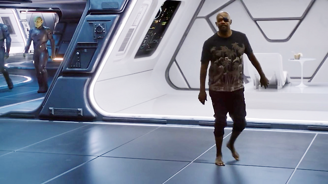 앞서 닉 퓨리는 '스파이더맨: 파 프롬 홈'에서 탈로스에게 자신의 대타를 맡긴 채, 지구를 떠나 우주에 있는 모습으로 그려졌었지요. 어떤 이유로 지구를 떠났었는지는 알 길이 없어 무척이나 궁금증을 자아내기도 했습니다.