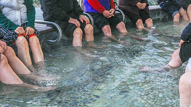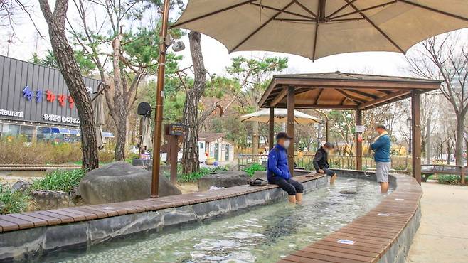 유성온천문화공원 족욕체험장은 무려 2만778㎡의 대지 위에 조성된 야외 노천 공간으로, 동시에 200명이 족욕을 즐길 수 있는 국내 최대 규모다. 💦