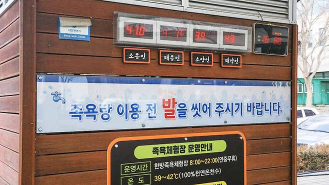 이곳의 온천수는 지하 200m에서 끌어올린 100% 천연수로, 겨울에도 39~42도 사이를 유지하며 온기를 제공한다.