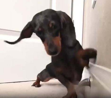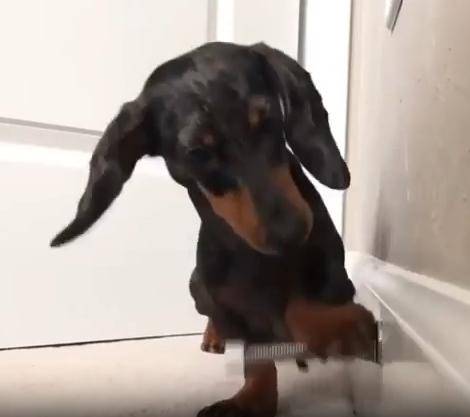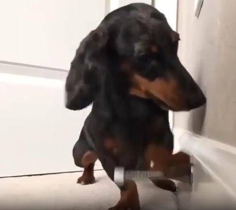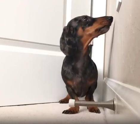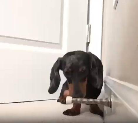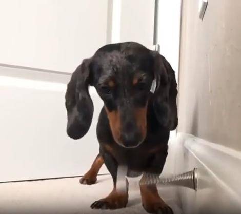 작고 길쭉한 몸, 짧은 다리, 그리고 호기심 가득한 눈빛. 닥스훈트 한 마리가 집 안 구석에서 무언가에 완전히 빠져버렸습니다. 그것은 장난감도, 간식도 아닌... 바로 용수철 도어 스토퍼. 금속으로 된 그 작고 반짝이는 물체가 강아지에겐 마치 살아 움직이는 친구 같았던 걸까요?