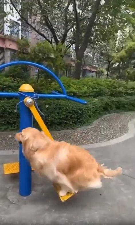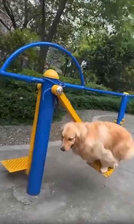 햇살이 따뜻하게 내려앉은 공원, 사람들을 위해 마련된 야외 운동기구들이 줄지어 서 있습니다. 그런데 그 풍경 속 한가운데, 누가 봐도 ‘운동’하러 나온 게 아닌 듯한 존재가 있습니다. 바로 골든리트리버 한 마리. 그런데 이 강아지가 뭘 하고 있느냐고요? 사람도 아니고 아이도 아닌, 이 녀석이 운동기구에 몸을 얹고선 마치 그네를 타듯 앞뒤로 흔들리고 있는 겁니다.
