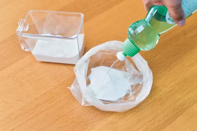 베이킹소다는 약알칼리성을 띠는 성분이다. 기름때는 산성과 결합하면서 분해되기 때문에 베이킹소다가 이를 중화하고 분리하는 역할을 한다. 동시에 냄새 제거에도 도움을 준다.