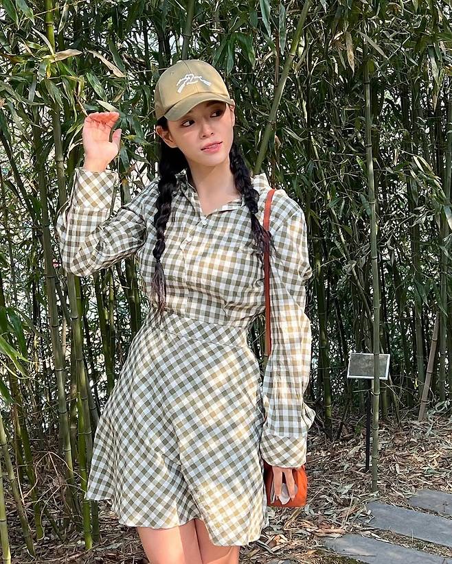 사진 속 김세정은 잔잔한 체크 패턴의 원피스를 입고 한적한 대나무 길을 걷고 있다. 허리를 자연스럽게 감싸며 퍼지는 라인의 원피스는 그녀의 날씬한 실루엣을 강조하며 사랑스러운 무드를 완성한다. 특히 긴소매와 적당한 기장의 스커트는 노출 없이도 섹시함을 담아낸다.