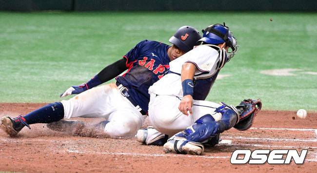 9회초 일본 만나미 츄세이가 카도와키 마코토의 적시타에 홈을 밟고 있다. 2023.11.16 / jpnews.osen.co.kr