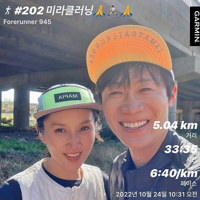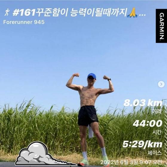 공개된 사진에는 아내 박보경과 함께 겨울 달리기를 하며 투병에서 서서히 나아지고 있다는 내용이었다. 진선규는