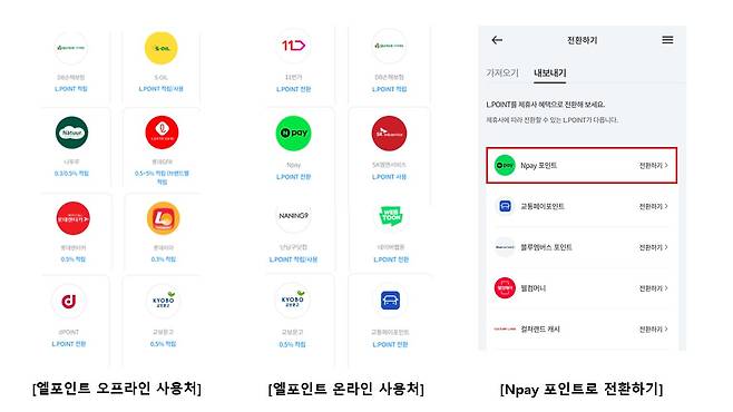 - 현금처럼 결제 시 ‘포인트 사용’을 선택하거나, 엘포인트 앱 내에서 제휴 포인트/머니로 전환하여 사용 가능