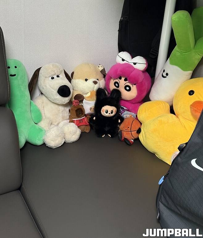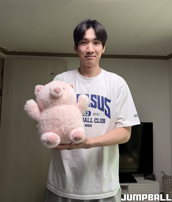 뽑기로 대령한 친구들은 많지만, 김민규의 최애 인형은 자신의 손으로 모신 친구가 아니었다. 까꿍이(가스공사 팬 애칭)사랑이 넘치는 그였기에, 까꿍이가 준 돼지 인형이 최애라고 당차게 외쳤다. “이거 한 까꿍이 분이 주셨어요. 정확한 시기는 기억 안 나지만 너무 귀여워서 최애가 되었습니다(웃음).” 김민규는 그러자 돼지 친구와 기념샷 하나를 남기고 싶다고 즉석 사진 촬영에 나섰다. 해맑은 그의 미소가 아름다운 한 컷이다.