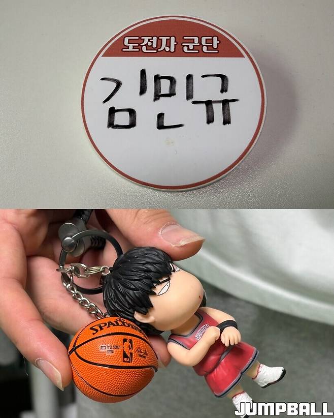 그러자 김민규는 “제일 소중한 기억들도 알려드릴게요”라며 두 가지를 내밀었다. 도전자 군단..? 스팔딩 농구공 키링? 얼핏 보면 무슨 조합일까 하는 생각이 들 두 가지였다.