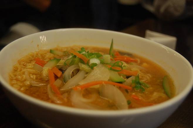 라면에 신선한 채소와