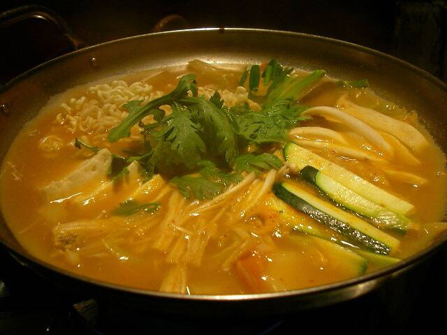 라면에 대파, 시금치, 양배추 같은