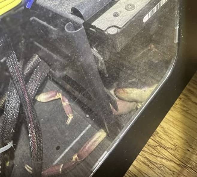 사연은 이렇습니다. 반려 게를 키웠다가 잃어버렸다는 집사는 SNS를 통해 3년 전 사라진 반려 게를 컴퓨터 본체 안에서 발견했다며 사진을 공개했죠.