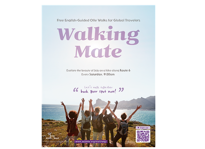 외국인을 위한 전용 걷기 프로그램 '워킹메이트'는 제주올레 영문 홈페이지 공지사항에 안내돼 있고 구글 링크를 통해 신청 가능합니다.
