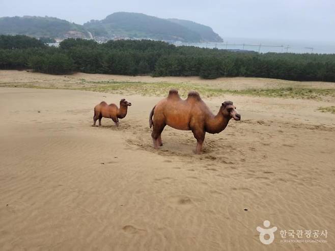 지형이 특이하다. 해안사구 곳곳에 모래사장과 모래톱(해안에 톱날 형태로 형성된 모래 지형)이 펼쳐져 있다. 낙타 조형물들이 줄을 맞춰 행진하는 모양으로 세워져 있어서 재미있는 사진을 찍기에도 좋다. 모래사장을 따라 걷다 보면 나무 데크를 설치한 소나무 숲이 나온다. 사막, 해변 그리고 숲이 모두 어우러진 자연 풍경을 즐기며 산책할 수 있는 명소다.
