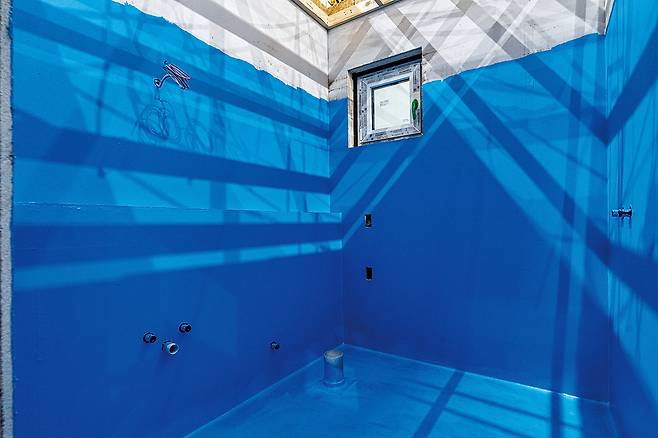 주택 하자의 가장 많은 부분을 차지하는 것이 누수다. 게다가 목조주택은 구조재 특성상 물에 다소 약하기 때문에 누수로 인한 피해가 클 수밖에 없다. 그래서 방수가 중요할 수밖에 없다. 공간제작소에서는 우레탄 방수보다 비용은 다소 높지만, 더 안정적인 폴리우레아 방수 공법을 채택해 적용하고 있다.