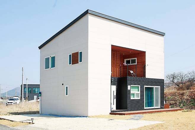 완성된 주택의 모습. 공장에서 볼 수 있었던 모듈의 모습은 사라지고 여느 단독주택과 다르지 않은 모습이다.