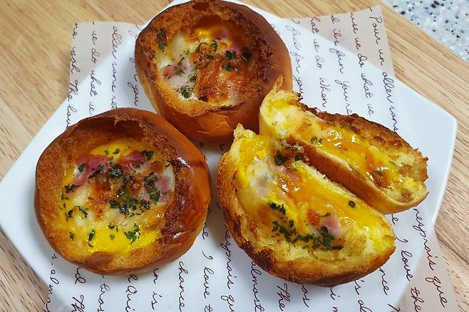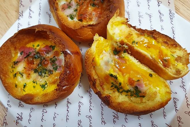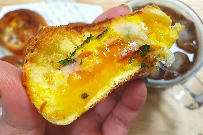 한번 먹어보니 부드러운 모닝빵에 촉촉한 계란, 베이컨, 치즈가 어우러져 너무 맛있습니다. 계란이 들어가니 든든한 느낌도 든답니다. 평소 계란빵 좋아하시면 집에서도 이렇게 만들어 보세요^^*
