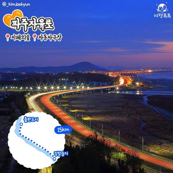 파주 자유로는 밤이 되면 교통체증 없이 뻥 뚫린 도로에서 드라이브를 즐길 수 있습니다. 밤에는 가로등 불빛 아래 반짝이는 한강 야경도 감상할 수 있어 경기도 야간 드라이브 코스로 이미 유명한데요. 자유로를 달려 도착할 수 있는 파주에는 놀거리가 많기도 합니다.