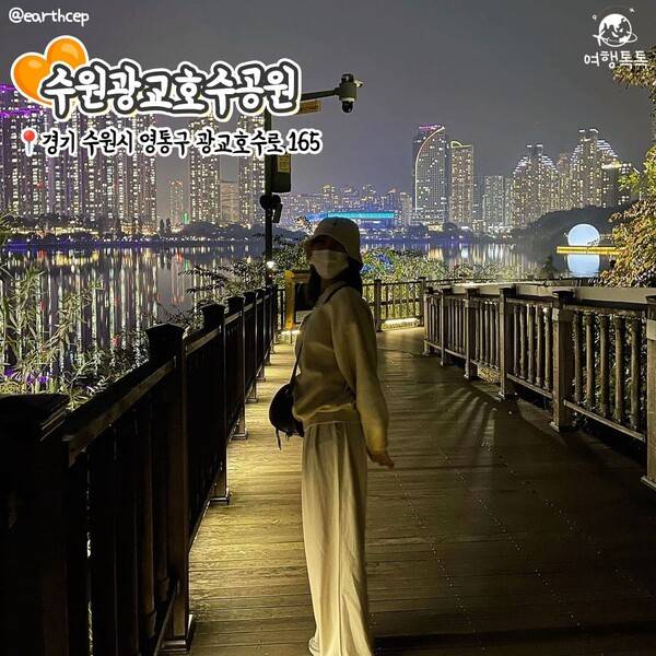 호수를 둘러싼 높고 화려한 빌딩의 조명들이 물에 반사되어 보다 색채감있는 야경을 볼 수 있는데요. 산책로의 조명은 여러 색으로 바뀝니다. 늦은 오후에 방문했다면 먹거리와 놀거리가 몰려있는 광교 앨리웨이에서 식사를 해결하고 가볍게 산책하는 코스를 추천합니다.