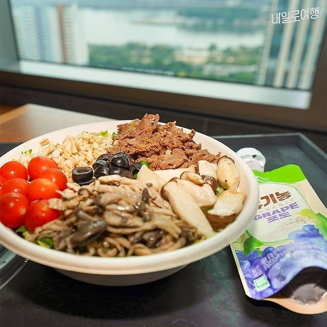 🌿 샐러드바에는 다양한 소스와 현미잡곡밥까지!특식도 계절마다 나온다는데, 베트남 땡모반부터 복날 닭요리까지! 🍗🍉 한강뷰 보면서 이런 럭셔리 식사가 가능하다니… 하이브 직원들 넘 부럽잖아